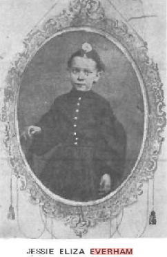 1878 Stevens Cemetery, DeKalb County, Illinois... "John Everham (b.19 Apr 1822, d.10 Feb 1874),.. Eliza A. Miller, his wife, (b.20 Aug 1823, d.26 May 1895)... Jessie E., wife of C.E. Mooar (1857-1878)"